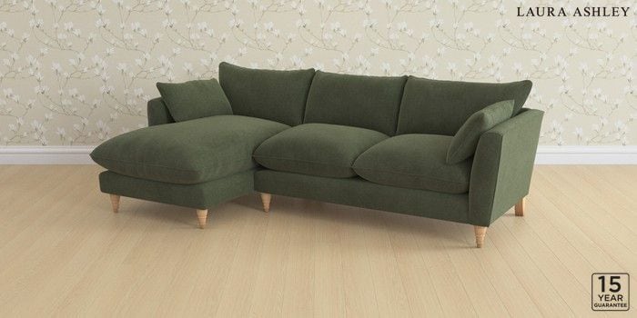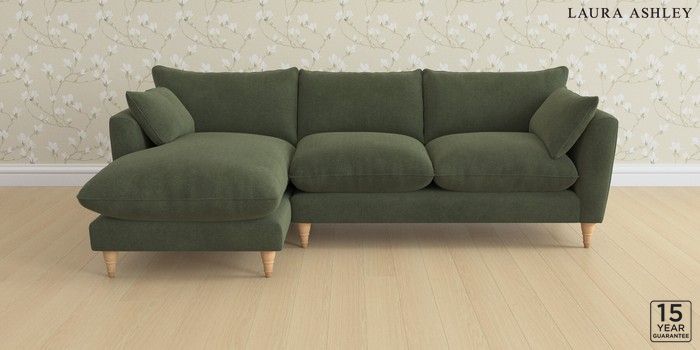 6.12.1 Buy Casterton by Laura Ashley Medium Sofa Chaise - Left Hand Lundar Chenille Ivy Green Low Turned - Light Oak from the Laura Ashley online shop Click here to use our website with more accessibility support, for example screen readers