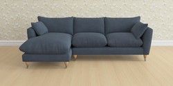 6.12.1 Buy Casterton by Laura Ashley Medium Sofa Chaise - Left Hand Lundar Chenille Navy Blue Low Chrome Castor - Light Oak from the Laura Ashley online shop Click here to use our website with more accessibility support, for example screen readers