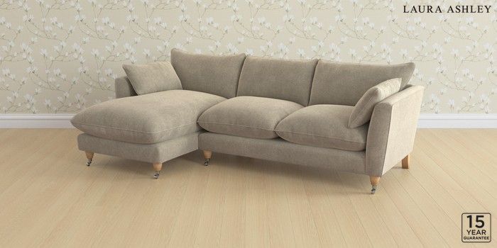 6.12.1 Buy Casterton by Laura Ashley Medium Sofa Chaise - Left Hand Lundar Chenille Truffle Natural Low Chrome Castor - Light Oak from the Laura Ashley online shop Click here to use our website with more accessibility support, for example screen readers
