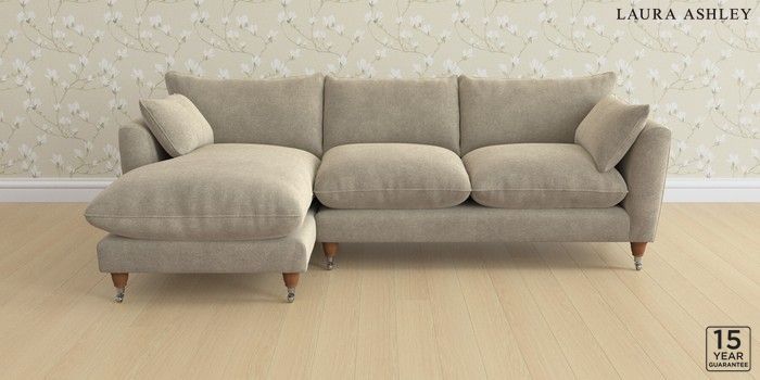 6.12.1 Buy Casterton by Laura Ashley Medium Sofa Chaise - Left Hand Lundar Chenille Truffle Natural Low Chrome Castor - Teak from the Laura Ashley online shop Click here to use our website with more accessibility support, for example screen readers