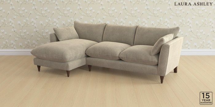 6.12.1 Buy Casterton by Laura Ashley Medium Sofa Chaise - Left Hand Lundar Chenille Truffle Natural Low Turned - Chestnut from the Laura Ashley online shop Click here to use our website with more accessibility support, for example screen readers