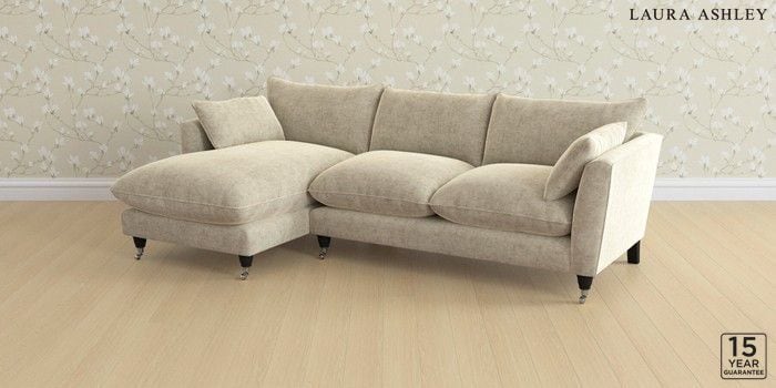6.12.1 Buy Casterton by Laura Ashley Medium Sofa Chaise - Left Hand Nantmor Truffle Natural Low Chrome Castor - Black from the Laura Ashley online shop Click here to use our website with more accessibility support, for example screen readers