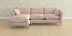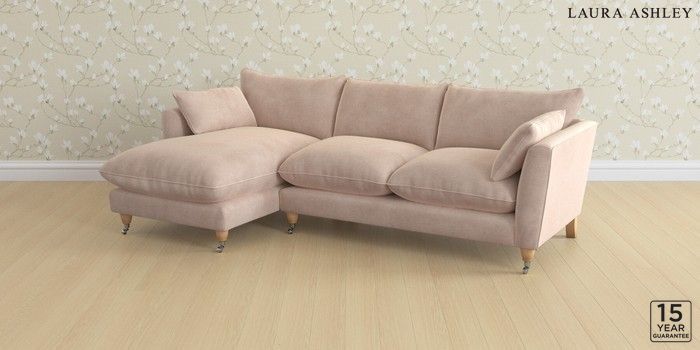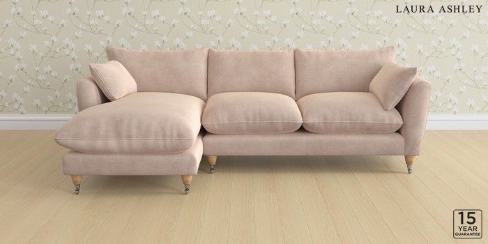 6.12.1 Buy Casterton by Laura Ashley Medium Sofa Chaise - Left Hand Orla Chalk Pink Low Chrome Castor - Light Oak from the Laura Ashley online shop Click here to use our website with more accessibility support, for example screen readers
