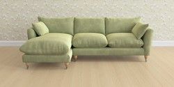 6.12.1 Buy Casterton by Laura Ashley Medium Sofa Chaise - Left Hand Orla Pale Hedgerow Green Low Chrome Castor - Light Oak from the Laura Ashley online shop Click here to use our website with more accessibility support, for example screen readers