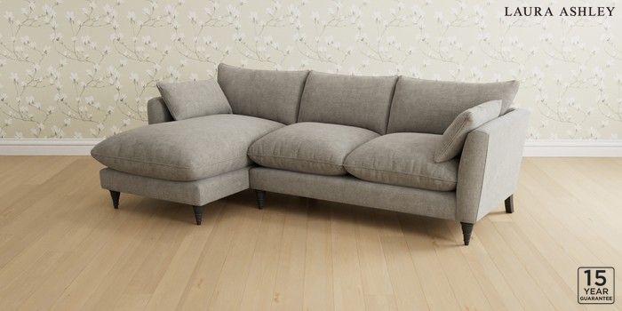 6.12.1 Buy Casterton by Laura Ashley Medium Sofa Chaise - Left Hand Orla Pale Steel Grey Low Turned - Black from the Laura Ashley online shop Click here to use our website with more accessibility support, for example screen readers