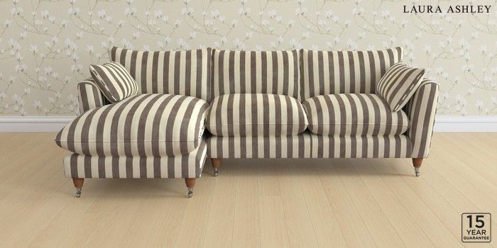 6.12.1 Buy Casterton by Laura Ashley Medium Sofa Chaise - Left Hand Orla Stripe Dark Truffle Natural Low Chrome Castor - Teak from the Laura Ashley online shop Click here to use our website with more accessibility support, for example screen readers