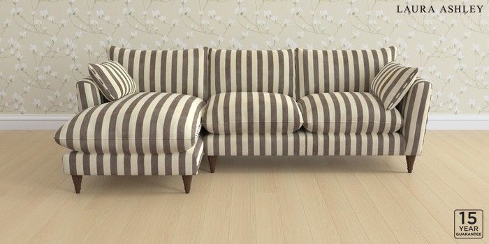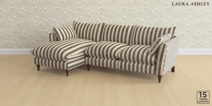 6.12.1 Buy Casterton by Laura Ashley Medium Sofa Chaise - Left Hand Orla Stripe Dark Truffle Natural Low Turned - Chestnut from the Laura Ashley online shop Click here to use our website with more accessibility support, for example screen readers