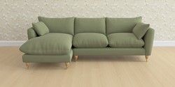 6.12.1 Buy Casterton by Laura Ashley Medium Sofa Chaise - Left Hand Peyton Hedgerow Green Low Brass Castor - Light Oak from the Laura Ashley online shop Click here to use our website with more accessibility support, for example screen readers