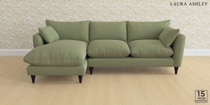 6.12.1 Buy Casterton by Laura Ashley Medium Sofa Chaise - Left Hand Peyton Hedgerow Green Low Turned - Black from the Laura Ashley online shop Click here to use our website with more accessibility support, for example screen readers