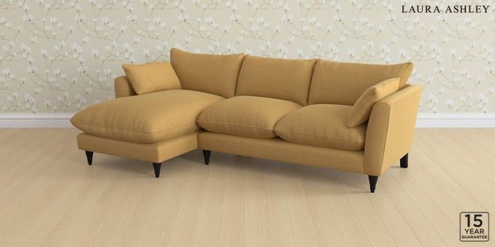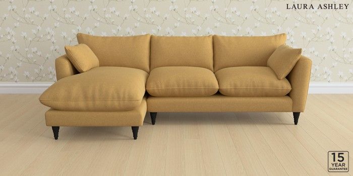 6.12.1 Buy Casterton by Laura Ashley Medium Sofa Chaise - Left Hand Peyton Ochre Yellow Low Turned - Black from the Laura Ashley online shop Click here to use our website with more accessibility support, for example screen readers
