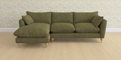 6.12.13 Buy Casterton by Laura Ashley Medium Sofa Chaise - Left Hand Sinclair Cord Ivy Green Low Brass Castor - Light Oak from the Laura Ashley online shop Click here to use our website with more accessibility support, for example screen readers
