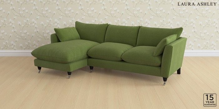 6.12.1 Buy Casterton by Laura Ashley Medium Sofa Chaise - Left Hand Tichwell Olive Green Low Chrome Castor - Black from the Laura Ashley online shop Click here to use our website with more accessibility support, for example screen readers
