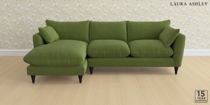 6.12.1 Buy Casterton by Laura Ashley Medium Sofa Chaise - Left Hand Tichwell Olive Green Low Turned - Black from the Laura Ashley online shop Click here to use our website with more accessibility support, for example screen readers