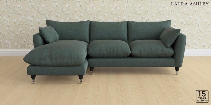 6.12.1 Buy Casterton by Laura Ashley Medium Sofa Chaise - Left Hand Wooton Forest Green Low Chrome Castor - Black from the Laura Ashley online shop Click here to use our website with more accessibility support, for example screen readers