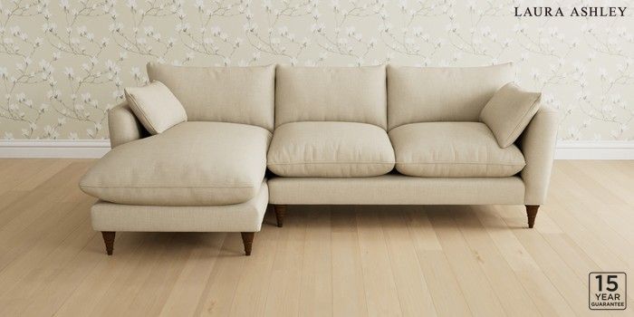 6.12.1 Buy Casterton by Laura Ashley Medium Sofa Chaise - Left Hand Wooton Natural Low Turned - Teak from the Laura Ashley online shop Click here to use our website with more accessibility support, for example screen readers