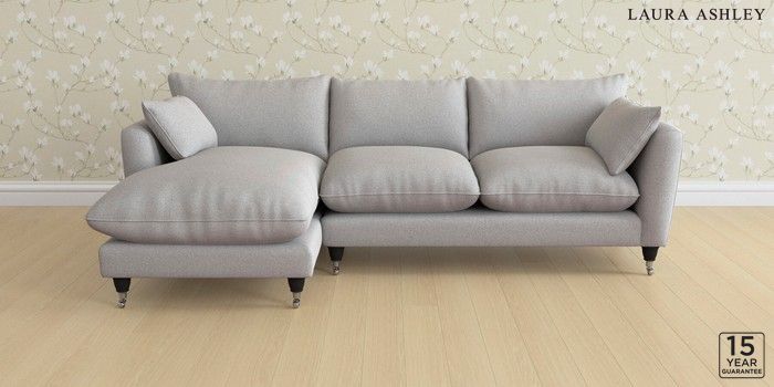 6.12.1 Buy Casterton by Laura Ashley Medium Sofa Chaise - Left Hand Wooton Pale Steel Grey Low Chrome Castor - Black from the Laura Ashley online shop Click here to use our website with more accessibility support, for example screen readers