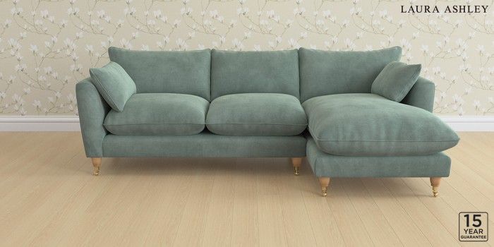 6.12.1 Buy Casterton by Laura Ashley Medium Sofa Chaise - Right Hand Ailsworth Fern Green Low Brass Castor - Light Oak from the Laura Ashley online shop Click here to use our website with more accessibility support, for example screen readers
