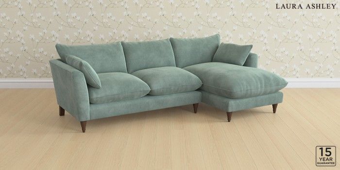 6.12.1 Buy Casterton by Laura Ashley Medium Sofa Chaise - Right Hand Ailsworth Fern Green Low Turned - Chestnut from the Laura Ashley online shop Click here to use our website with more accessibility support, for example screen readers
