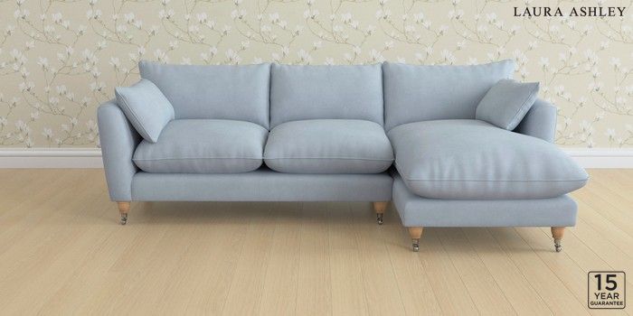 6.12.1 Buy Casterton by Laura Ashley Medium Sofa Chaise - Right Hand Ailsworth Newport Blue Low Chrome Castor - Light Oak from the Laura Ashley online shop Click here to use our website with more accessibility support, for example screen readers