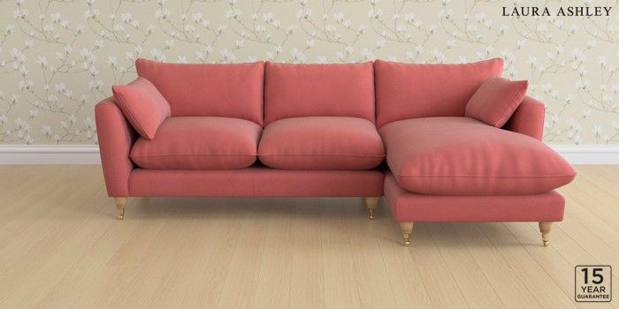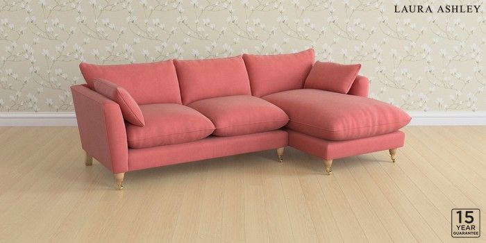 6.12.1 Buy Casterton by Laura Ashley Medium Sofa Chaise - Right Hand Ailsworth Old Rose Pink Low Brass Castor - Light Oak from the Laura Ashley online shop Click here to use our website with more accessibility support, for example screen readers