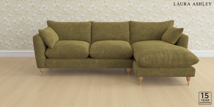 6.12.1 Buy Casterton by Laura Ashley Medium Sofa Chaise - Right Hand Alwyn Velvet Olive Green Low Brass Castor - Light Oak from the Laura Ashley online shop Click here to use our website with more accessibility support, for example screen readers