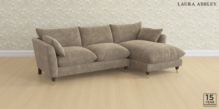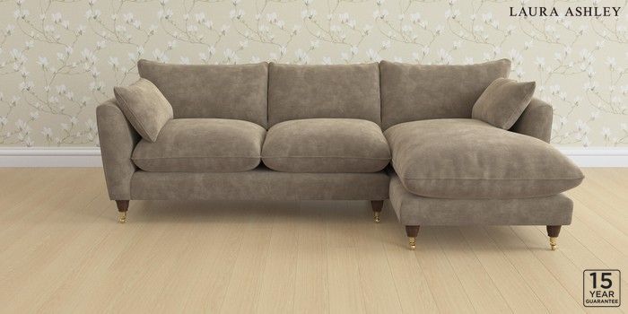 6.12.1 Buy Casterton by Laura Ashley Medium Sofa Chaise - Right Hand Alwyn Velvet Truffle Natural Low Brass Castor - Chestnut from the Laura Ashley online shop Click here to use our website with more accessibility support, for example screen readers