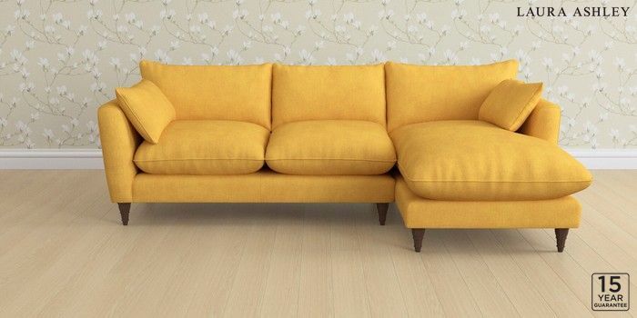 6.12.1 Buy Casterton by Laura Ashley Medium Sofa Chaise - Right Hand Bainton Ochre Yellow Low Turned - Chestnut from the Laura Ashley online shop Click here to use our website with more accessibility support, for example screen readers