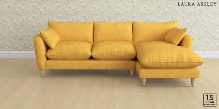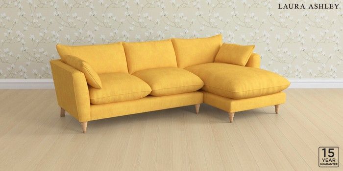 6.12.1 Buy Casterton by Laura Ashley Medium Sofa Chaise - Right Hand Bainton Ochre Yellow Low Turned - Light Oak from the Laura Ashley online shop Click here to use our website with more accessibility support, for example screen readers