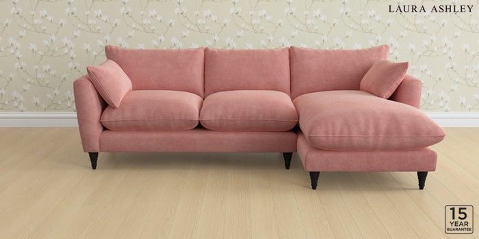 6.12.1 Buy Casterton by Laura Ashley Medium Sofa Chaise - Right Hand Bainton Old Rose Pink Low Turned - Black from the Laura Ashley online shop Click here to use our website with more accessibility support, for example screen readers