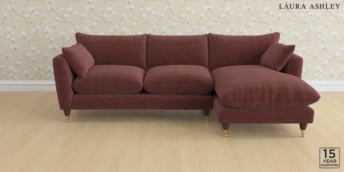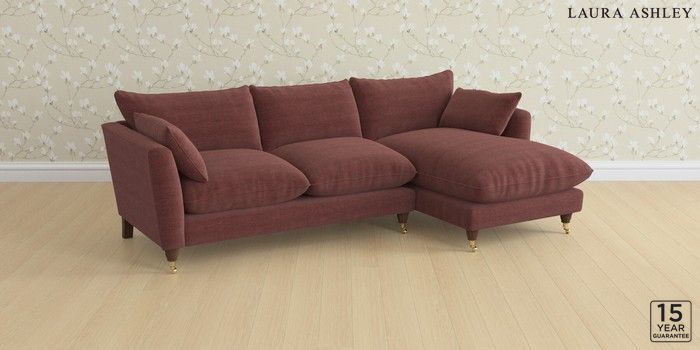 6.12.13 Buy Casterton by Laura Ashley Medium Sofa Chaise - Right Hand Edwin Chenille Burgundy Red Low Brass Castor - Chestnut from the Laura Ashley online shop Click here to use our website with more accessibility support, for example screen readers