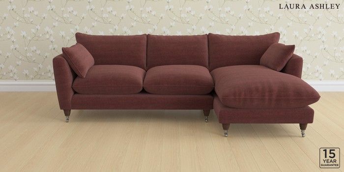 6.12.1 Buy Casterton by Laura Ashley Medium Sofa Chaise - Right Hand Edwin Chenille Burgundy Red Low Chrome Castor - Chestnut from the Laura Ashley online shop Click here to use our website with more accessibility support, for example screen readers