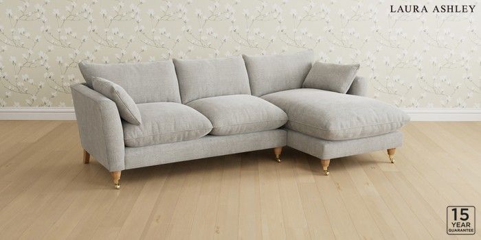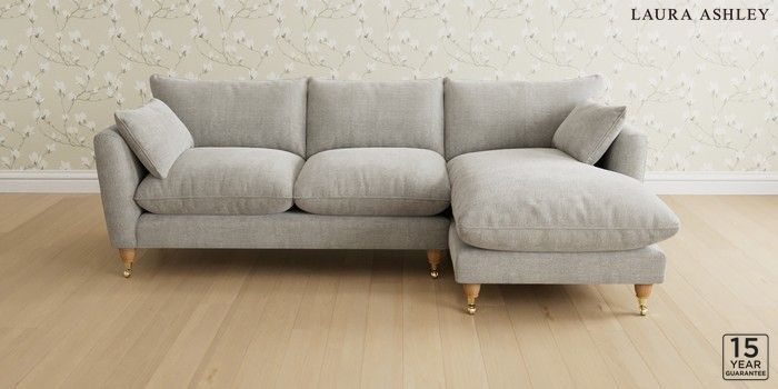6.12.1 Buy Casterton by Laura Ashley Medium Sofa Chaise - Right Hand Edwin Chenille Silver Grey Low Brass Castor - Light Oak from the Laura Ashley online shop Click here to use our website with more accessibility support, for example screen readers