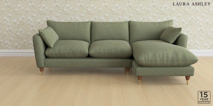 6.12.1 Buy Casterton by Laura Ashley Medium Sofa Chaise - Right Hand Harley Moss Green Low Brass Castor - Teak from the Laura Ashley online shop Click here to use our website with more accessibility support, for example screen readers