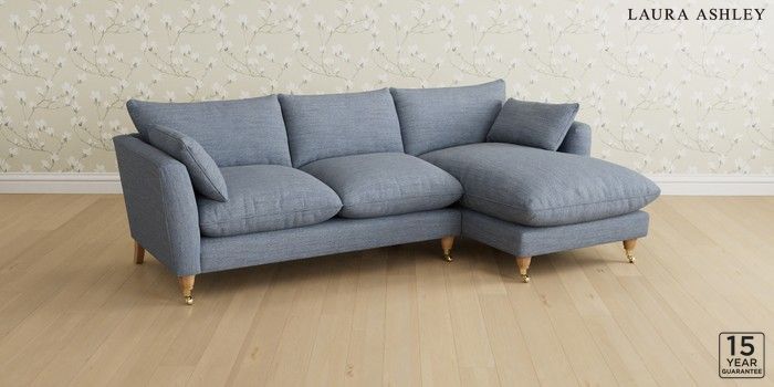 6.12.13 Buy Casterton by Laura Ashley Medium Sofa Chaise - Right Hand Harley Seaspray Blue Low Brass Castor - Light Oak from the Laura Ashley online shop Click here to use our website with more accessibility support, for example screen readers