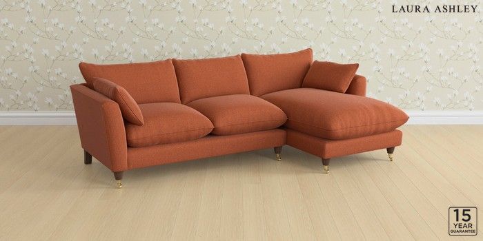 6.12.1 Buy Casterton by Laura Ashley Medium Sofa Chaise - Right Hand Harley Terracotta Orange Low Brass Castor - Chestnut from the Laura Ashley online shop Click here to use our website with more accessibility support, for example screen readers