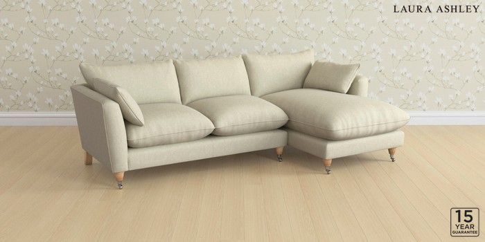 6.12.1 Buy Casterton by Laura Ashley Medium Sofa Chaise - Right Hand Kinsham Natural Low Chrome Castor - Light Oak from the Laura Ashley online shop Click here to use our website with more accessibility support, for example screen readers