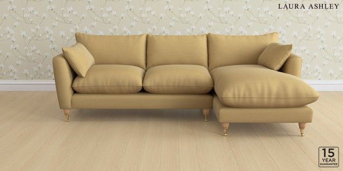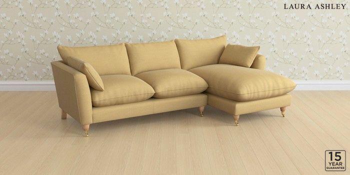 6.12.1 Buy Casterton by Laura Ashley Medium Sofa Chaise - Right Hand Kinsham Ochre Yellow Low Brass Castor - Light Oak from the Laura Ashley online shop Click here to use our website with more accessibility support, for example screen readers