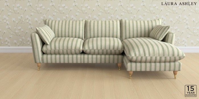 6.12.1 Buy Casterton by Laura Ashley Medium Sofa Chaise - Right Hand Kinsham Stripe Hedgerow Green Low Brass Castor - Light Oak from the Laura Ashley online shop Click here to use our website with more accessibility support, for example screen readers