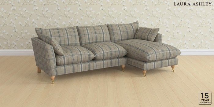 6.12.1 Buy Casterton by Laura Ashley Medium Sofa Chaise - Right Hand Longstowe Check French Grey Low Brass Castor - Light Oak from the Laura Ashley online shop Click here to use our website with more accessibility support, for example screen readers