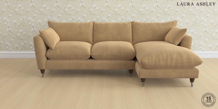 6.12.1 Buy Casterton by Laura Ashley Medium Sofa Chaise - Right Hand Lundar Chenille Caramel Natural Low Chrome Castor - Chestnut from the Laura Ashley online shop Click here to use our website with more accessibility support, for example screen readers