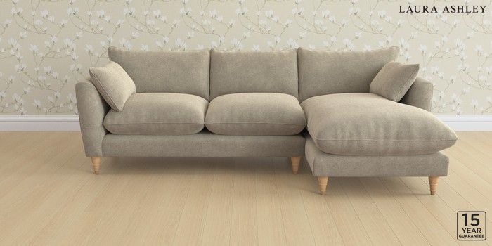 6.12.1 Buy Casterton by Laura Ashley Medium Sofa Chaise - Right Hand Lundar Chenille Truffle Natural Low Turned - Light Oak from the Laura Ashley online shop Click here to use our website with more accessibility support, for example screen readers