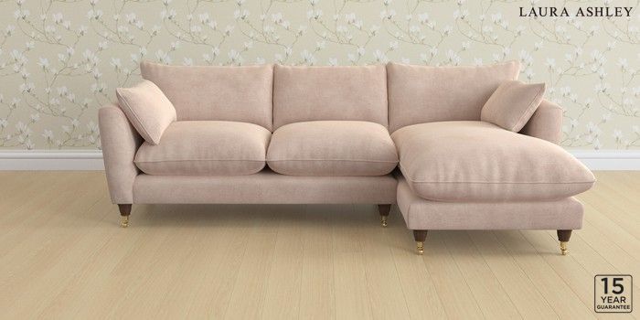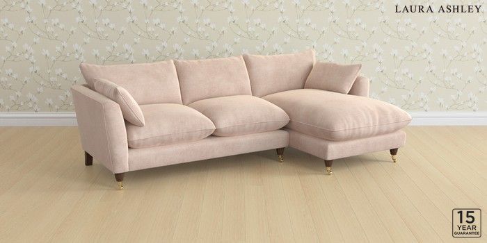 6.12.1 Buy Casterton by Laura Ashley Medium Sofa Chaise - Right Hand Orla Chalk Pink Low Brass Castor - Chestnut from the Laura Ashley online shop Click here to use our website with more accessibility support, for example screen readers