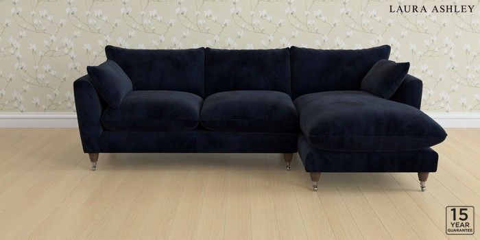 6.12.1 Buy Casterton by Laura Ashley Medium Sofa Chaise - Right Hand Orla Midnight Navy Low Chrome Castor - Chestnut from the Laura Ashley online shop Click here to use our website with more accessibility support, for example screen readers