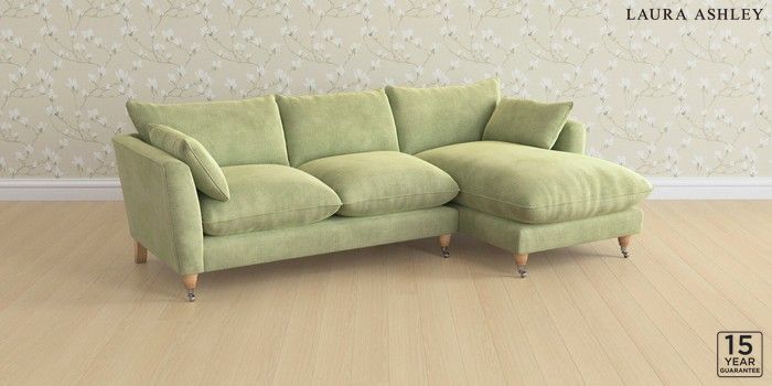 6.12.13 Buy Casterton by Laura Ashley Medium Sofa Chaise - Right Hand Orla Pale Hedgerow Green Low Chrome Castor - Light Oak from the Laura Ashley online shop Click here to use our website with more accessibility support, for example screen readers