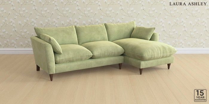 6.12.1 Buy Casterton by Laura Ashley Medium Sofa Chaise - Right Hand Orla Pale Hedgerow Green Low Turned - Chestnut from the Laura Ashley online shop Click here to use our website with more accessibility support, for example screen readers