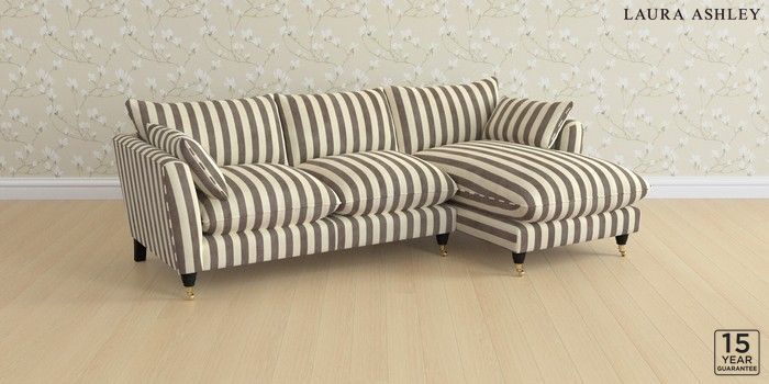 6.12.1 Buy Casterton by Laura Ashley Medium Sofa Chaise - Right Hand Orla Stripe Dark Truffle Natural Low Brass Castor - Black from the Laura Ashley online shop Click here to use our website with more accessibility support, for example screen readers