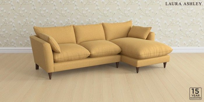 6.12.1 Buy Casterton by Laura Ashley Medium Sofa Chaise - Right Hand Peyton Ochre Yellow Low Turned - Chestnut from the Laura Ashley online shop Click here to use our website with more accessibility support, for example screen readers
