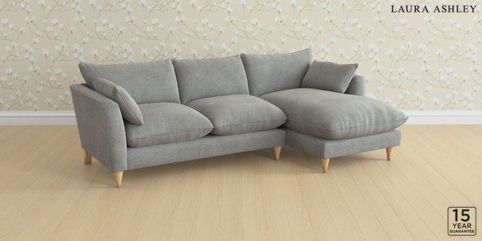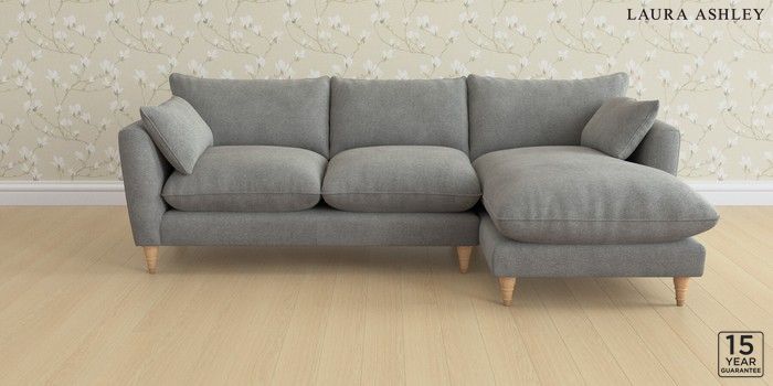 6.12.1 Buy Casterton by Laura Ashley Medium Sofa Chaise - Right Hand Wooton Dark Steel Grey Low Turned - Light Oak from the Laura Ashley online shop Click here to use our website with more accessibility support, for example screen readers