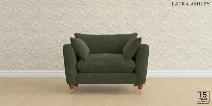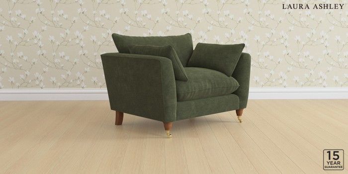 6.12.13 Buy Casterton by Laura Ashley Snuggle Alwyn Velvet Ivy Green Low Brass Castor - Teak from the Laura Ashley online shop Click here to use our website with more accessibility support, for example screen readers