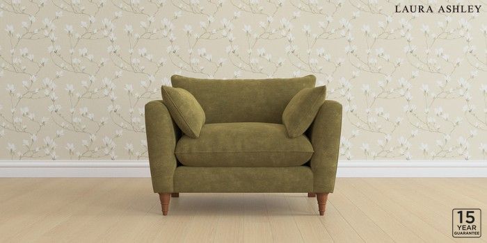 6.12.1 Buy Casterton by Laura Ashley Snuggle Alwyn Velvet Olive Green Low Turned - Teak from the Laura Ashley online shop Click here to use our website with more accessibility support, for example screen readers